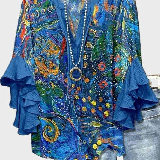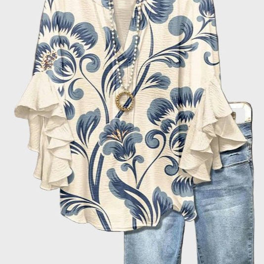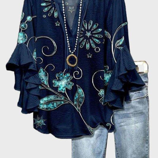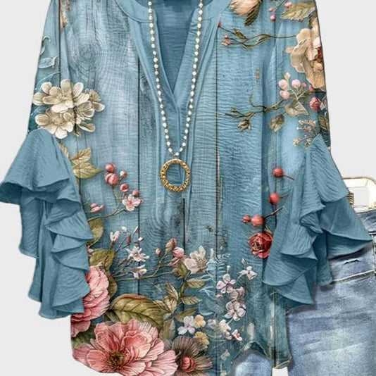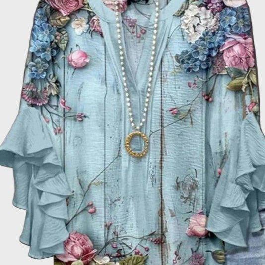 Ludmila – Boho Květovaná Halenka v Nebesky Modré