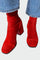 Tyto červené semišové boty vynikají intenzivní barvou a moderním designem, který spojuje přiléhavý, strukturovaný svršek se širokým podpatkem pro stabilitu. Čtvercová špička dodává botám současný a sofistikovaný vzhled, takže jsou ideální pro ty, kdo milují výrazné kousky, které okamžitě povýší každý outfit.