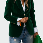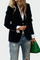 Tento dámský kabát má klasický a elegantní design se strukturovaným střihem, výraznými klopami a zapínáním na jeden zlatý knoflík, který dodává modelu decentní nádech luxusu. Černá barva zajišťuje vysokou univerzálnost, díky čemuž je kabát ideální jak do pracovního prostředí, tak i pro ležérnější kombinace.