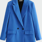 Tento dámský kabát nabízí moderní a elegantní design s rovným střihem, klasickými klopami a zapínáním na dva knoflíky, které vytvářejí upravený a současný vzhled. Výrazná modrá barva dodává modelu osobitost, díky čemuž je kabát ideální volbou jak pro každodenní nošení, tak i do pracovního prostředí.