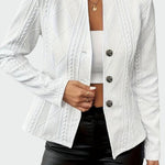Tento dámský kabát zaujme plastickým reliéfním vzorem, který dodává modelu strukturu a sofistikovaný vzhled. Strukturovaný střih s krátkým límcem a knoflíkovým zapínáním vytváří moderní a elegantní siluetu, zatímco bílá barva působí svěže a univerzálně, ideální pro současné denní i večerní outfity.
