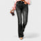 Tyto černé džíny mají jemně rozšířený střih, který opticky prodlužuje postavu a působí elegantně i moderně. Tmavý denim s lehkým vyšisováním dodává hloubku a univerzálnost, takže se skvěle hodí jak k ležérním, tak i k více upraveným outfitům. Středně vysoký pas zajišťuje pohodlné padnutí.