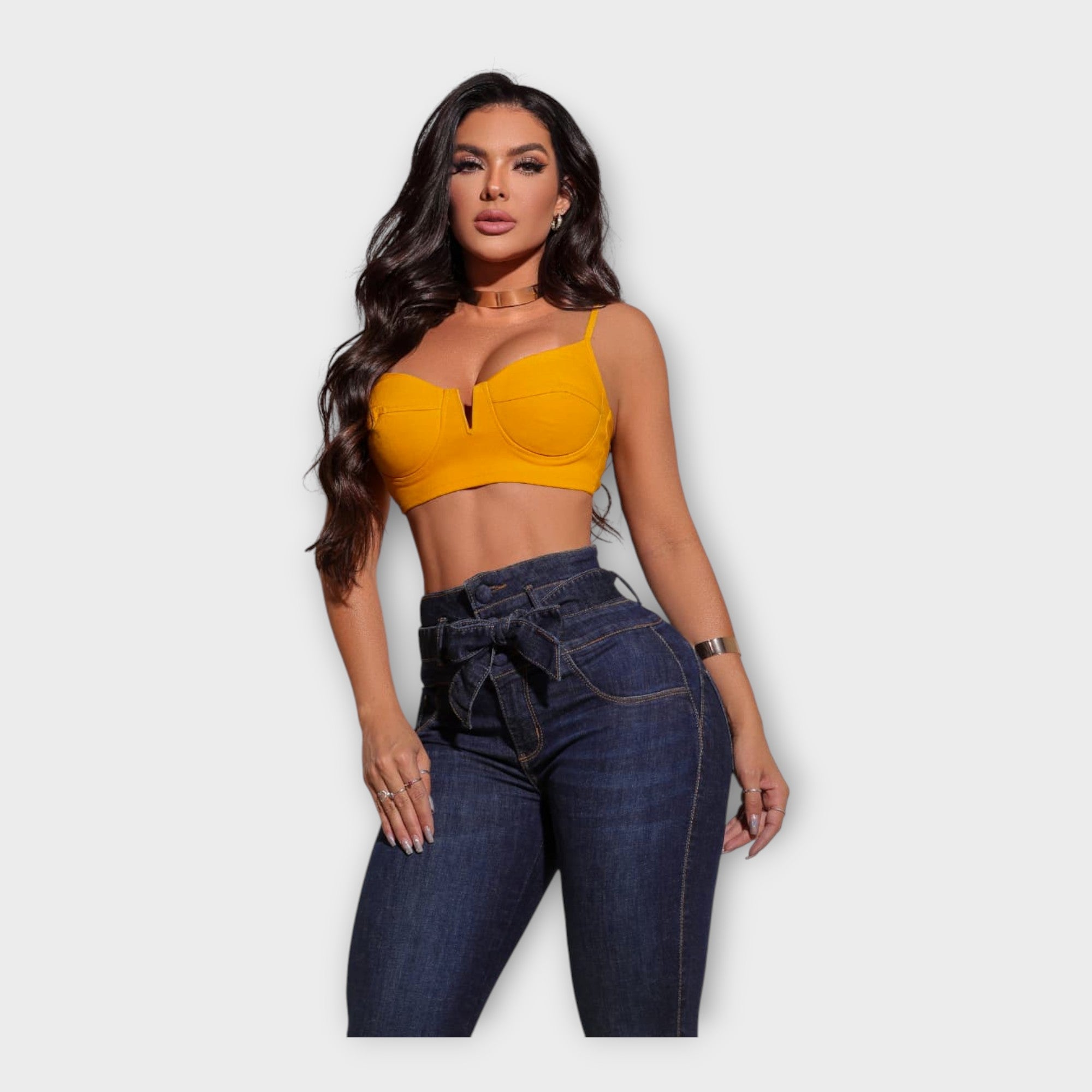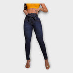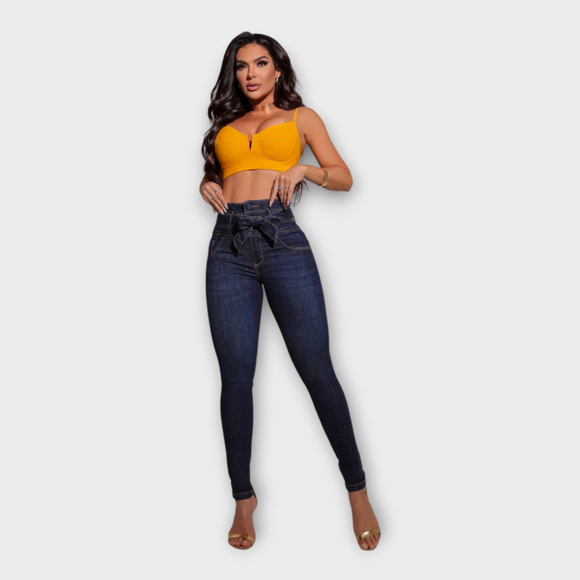 Tyto úzké džínové kalhoty zvýrazňují postavu díky skinny střihu a vysokému pasu, který opticky prodlužuje nohy a dodává elegantní tvar. Integrovaný džínový pásek poskytuje lepší přizpůsobení a stylový detail, který celý outfit pozvedne. Elastický denim zaručuje pohodlí i volnost pohybu po celý den.
