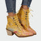 Tyto šněrovací kozačky mají bohatě zdobený design v živých odstínech žluté, růžové a modré, inspirovaný klasickými gobelíny. Středně vysoký dřevěný podpatek dodává rustikální eleganci a detailní tkanina přináší sofistikovaný vzhled, díky kterému je každý pár skutečně výjimečný. Ideální volba pro ty, kteří milují výrazné kousky, jež okamžitě pozvednou celý outfit.