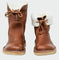 Tyto hnědé kožené kozačky mají teplou a měkkou kožešinovou podšívku, která udržuje nohy v pohodlí i v chladných dnech. Přední šněrování dodává rustikální nádech a lehká podrážka zaručuje stabilitu a pohodlí při chůzi. Ohnutelný svršek umožňuje měnit styl podle potřeby, takže jsou kozačky všestranné a praktické.