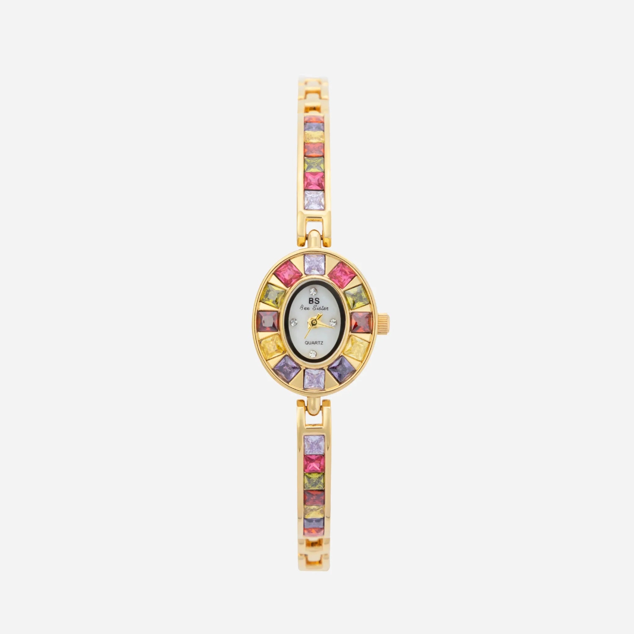 Sidsel – Stylové hodinky vyjadřuje luxus prostřednictvím řemeslného zpracování a originálního designu. Živá paleta barev a zlaté detaily dodávají tvému vzhledu umělecký nádech a jedinečnou osobnost. Tento designový kousek je vytvořen pro ženy, které se nebojí projevit styl a oceňují kvalitu a pečlivost v každém detailu..