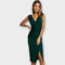 Tyto tmavě zelené šaty nabízejí sofistikovaný střih, který spojuje strukturovanou eleganci s moderními detaily. Překládaný výstřih do V zvýrazňuje horní část postavy, zatímco drapování v pase krásně tvaruje siluetu. Midi sukně s jemným rozparkem dodává pohyb i nenápadnou smyslnost, díky čemuž jsou šaty ideální na formální akce, elegantní večeře nebo příležitosti, kdy chcete působit sebevědomě a noblesně.