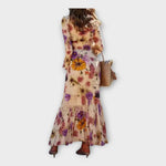 Tyto šaty přinášejí romantický a sofistikovaný vzhled s výrazným květinovým vzorem, který působí svěže a elegantně. Široké rukávy dodávají lehkost a plynulý pohyb, zatímco dlouhý střih vytváří ladnou a ženskou siluetu. Jsou ideální volbou pro speciální příležitosti, kdy chcete zaujmout jemným, ale výrazným stylem.