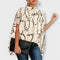 Tato volná halenka zaujme uměleckým potiskem z jednolitých linek, který vytváří moderní a výrazný vzhled. Široký střih s otevřenými rukávy poskytuje pohodlí a volnost pohybu, zatímco lehce řasený stojáček dodává elegantní detail. Jedinečný kousek pro každého, kdo ocení kreativní a sofistikovanou módu.