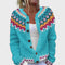 Tento Barevný Kardigan zaujme živou kombinací barev a dekorativním vzorem v oblasti ramen a manžet, který dodává outfitu veselý a řemeslný nádech. Měkký a pohodlný úplet spolu se zapínáním na knoflíky a uvolněným střihem z něj činí ideální kousek pro oživení jednoduchých outfitů s osobitým stylem.