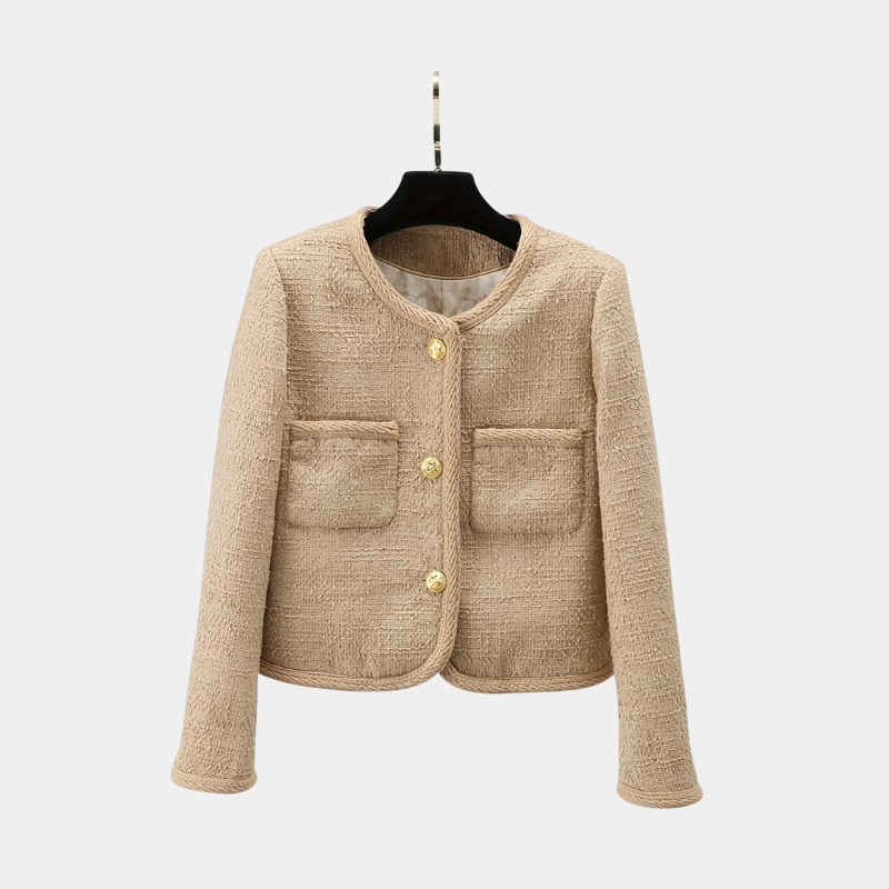 Tento Strukturovaný Kardigan zaujme pevnějším střihem a výraznou strukturou materiálu, která působí elegantně a nadčasově. Neutrální odstín zajišťuje univerzální využití, zatímco zlaté knoflíky a přední kapsy dodávají modelu sofistikovaný detail. Ideální volba pro ženy, které hledají stylový a kvalitní kousek do šatníku.