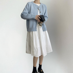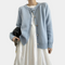 Tento Jemný Kardigan zaujme měkkým úpletem ve světle modrém odstínu, který působí lehce, jemně a velmi elegantně. Jednoduchý design s nenápadnými knoflíky a žebrovaným lemem vytváří nadčasový a ženský vzhled, ideální k vrstvení přes šaty nebo ke světlým outfitům.