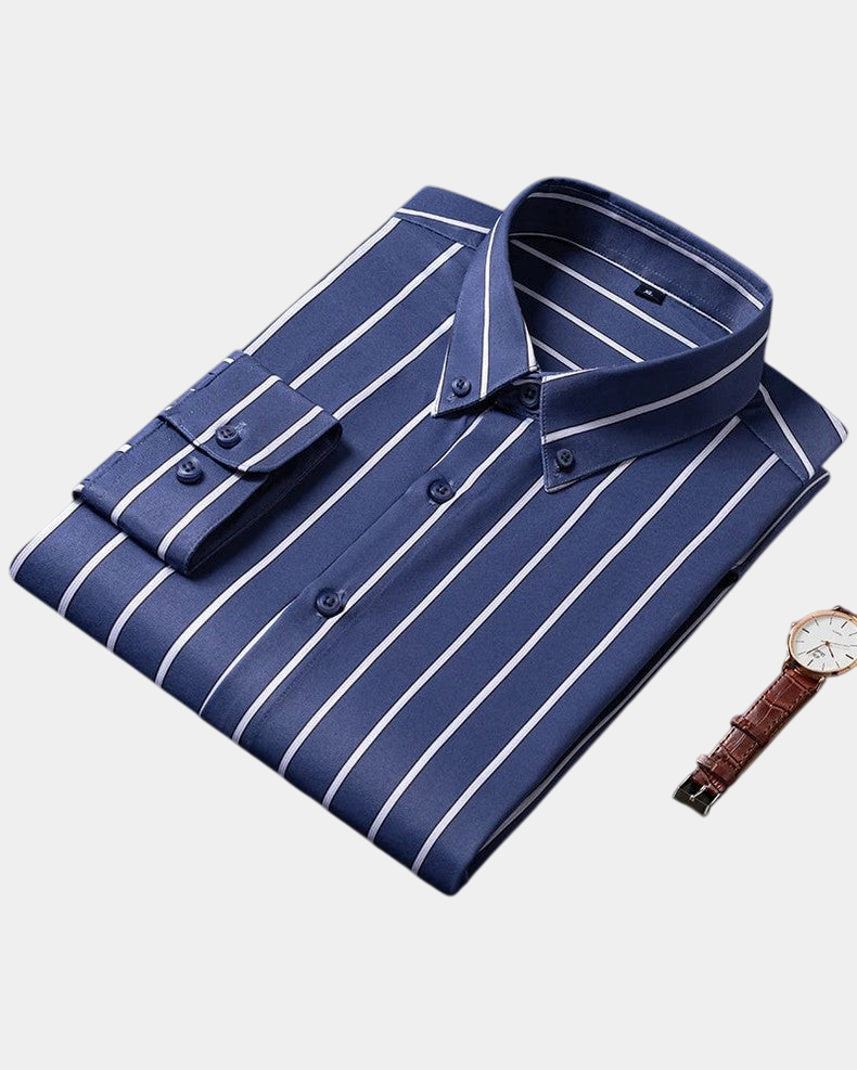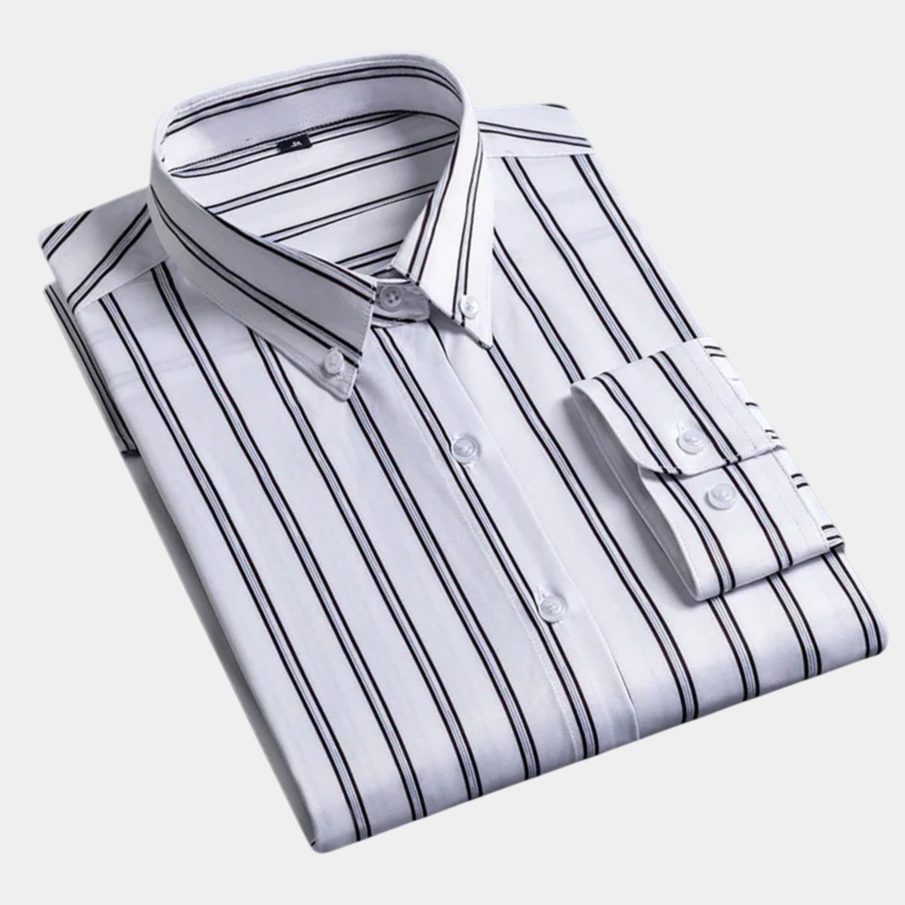 Elegantní pruhovaná košile Radek spojuje vytříbenost a moderní styl pro ty, kteří oceňují výraz a sebevědomí. Svislý pruhovaný vzor opticky prodlužuje postavu, zatímco měkká a prodyšná tkanina poskytuje pohodlí po celý den. Strukturovaný límec a precizní střih činí z této košile ideální volbu do pracovního prostředí i na společenské události, přidávající každému outfitu nadčasový nádech elegance.