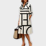 Petra - Elegantní halenka-šaty s geometrickým vzorem