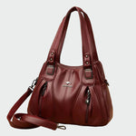 Dragomira – Elegantní kabelka je vyrobena z pravé kůže v sofistikovaném vínovém odstínu a zaujme jemnými svislými liniemi, které zvýrazňují tvar a dodávají kabelce ženský a upravený vzhled. Design spojuje eleganci s praktičností díky několika kapsám na zip, které pomáhají udržet věci přehledně uspořádané. Horní rukojeti zajišťují pohodlné nošení a nastavitelný popruh umožňuje nošení přes rameno nebo křížem přes tělo, což z ní činí ideální doplněk pro práci i společenské příležitosti.
