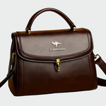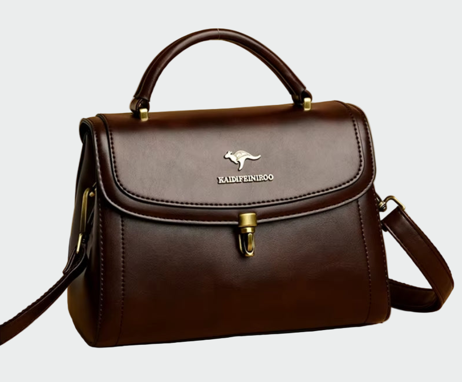 Gudrun – Strukturovaná kabelka je vyrobena z pravé černé kůže a zaujme klasickým, pevně tvarovaným designem, který působí elegantně a spolehlivě. Přední klopa s kovovým zapínáním zajišťuje bezpečné uložení nezbytností a horní madlo umožňuje stylové nošení v ruce. Díky nastavitelnému popruhu lze kabelku nosit také křížem přes tělo, což z ní činí univerzální doplněk pro práci i formálnější příležitosti.
