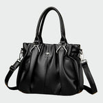 Irmgard – Řasená kabelka je vyrobena z pravé černé kůže a vyniká elegantním designem s jemným řasením, které dodává kabelce objem a sofistikovaný vzhled. Vyvážený tvar poskytuje dostatek prostoru pro každodenní nezbytnosti a zároveň si zachovává upravený a ženský styl. Díky nastavitelnému popruhu ji lze nosit v ruce, na rameni nebo křížem přes tělo, což z ní činí praktický a stylový doplněk.
