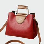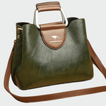 Petra – Kožená kabelka Elegance Duo spojuje moderní design s nadčasovou elegancí. Je vyrobena z měkké černé kůže a doplněna pevnou horní rukojetí v karamelovém odstínu s kovovým detailem. Díky nastavitelnému popruhu ji lze nosit v ruce i přes rameno. Stylová a praktická volba pro každý den.