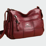 Radoslava – Městská kabelka je vyrobena z pravé kůže v elegantním vínovém odstínu a je navržena pro každodenní pohodlné nošení. Praktické provedení nabízí několik vnějších kapes na zip, které umožňují přehledné uspořádání věcí a snadný přístup k nim. Nastavitelný popruh zajišťuje komfort při nošení přes rameno nebo křížem přes tělo, díky čemuž je tato kabelka ideální volbou do města i na běžné dny.
