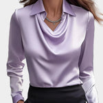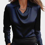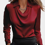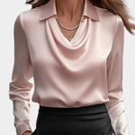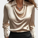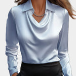 Lenka - Elegantní bílá saténová blůza s drapovaným výstřihem