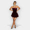Tyto krátké sametové šaty nabízejí smyslný a elegantní design s pevně tvarovaným živůtkem bez ramínek, který zvýrazňuje dekolt a jemně formuje postavu. Bohatá struktura sametu dodává hloubku a sofistikovanost, zatímco mírně rozšířená sukně vytváří vyvážený kontrast mezi smyslností a jemností. Jsou ideální volbou pro večerní akce, kde je žádoucí výrazný a okouzlující vzhled.