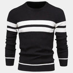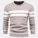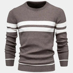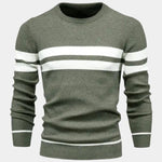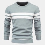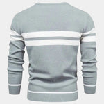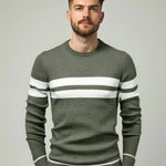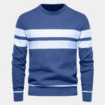 Tento dynamický modrý svetr zaujme bílými pruhy, které dodávají mladistvý a moderní vzhled, zatímco jemná textura jej udržuje elegantní. Měkký materiál poskytuje vysoké pohodlí a klasický střih dobře sedí na postavě. Je to univerzální a stylový kousek, ideální pro každého, kdo hledá volnočasový outfit s osobitým charakterem.