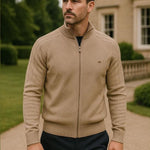 Klasický kardigan na zip spojuje eleganci a pohodlí v univerzálním kousku pro každé období. Geometrická struktura pleteniny dodává sofistikovaný vzhled a přední zip umožňuje snadné a rychlé oblékání. Přiléhavé rukávy a moderní střih zajišťují dokonalé padnutí – ideální pro ležérní i formálnější outfity. Skvělá volba pro každého, kdo hledá stylový a nadčasový svetr.