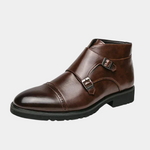 Tyto boty představují klasické dvojité monk zapínání, které spojuje moderní eleganci s tradičním stylem. Leštěná kůže zajišťuje výrazný vzhled a pevná podrážka poskytuje pohodlí i stabilitu při každodenním nošení nebo formálních příležitostech.