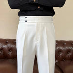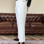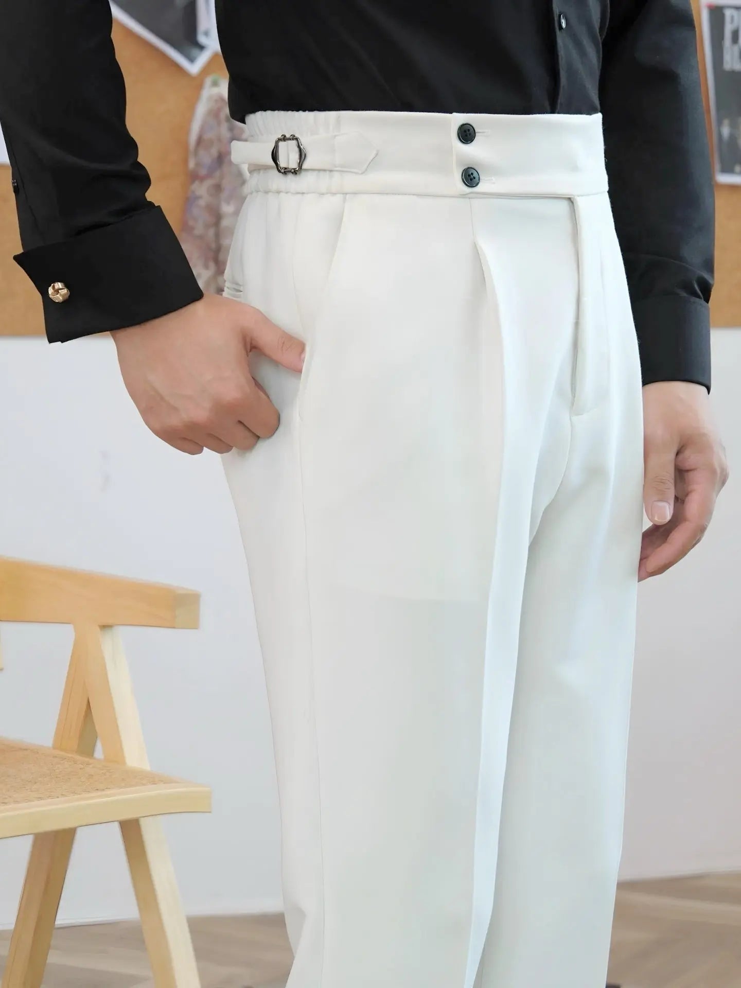 Marco - Sidetab Italia Kalhoty ztělesňuje nadčasovou eleganci prostřednictvím klasického italského designu a výjimečného řemeslného zpracování. Elastický pas s bočním zapínáním zajišťuje bezproblémový střih a jemný, nenápadný pocit pohodlí pro každou příležitost. Střih zachovává čistou a sofistikovanou siluetu, která respektuje tradici, aniž by obětovala moderní komfort.