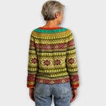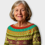 Tento tradiční pletený svetr zaujme bohatě propracovaným vzorem a výraznou kombinací zelených, červených a teplých tónů, které připomínají klasické řemeslné zpracování. Kulatý výstřih a pohodlný střih zajišťují komfort při každodenním nošení, zatímco dekorativní design dodává svetru osobitý a autentický charakter. Ideální volba pro ty, kteří oceňují výrazné, hřejivé a nadčasové kousky.