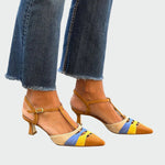 Šněrované podpatky Drahomíra mají lehký a umělecký vzhled, doplněný předními pásky, které vytvářejí dynamický a elegantní efekt. Pásek ve tvaru „T“ opticky prodlužuje chodidlo a nabízí stabilitu při chůzi, zatímco nízký podpatek zajišťuje celodenní pohodlí. Tento model je ideální pro ty, kteří oceňují originální detaily a kreativní styl.