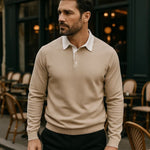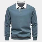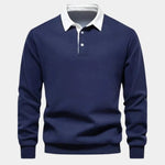 Polo Dalibor vyzařuje klasickou eleganci s moderním nádechem. Kontrast mezi tmavě modrou a bílým límcem vytváří sofistikovaný a nenápadný vzhled, ideální pro muže, kteří oceňují vytříbený styl bez zbytečné okázalosti. Měkká a pohodlná tkanina je vhodná do chladnějších dnů a zároveň poskytuje volnost pohybu i upravený vzhled.