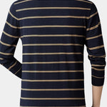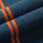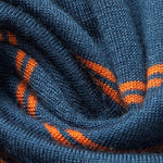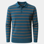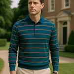 Polo Leoš přináší moderní styl s retro nádechem díky kombinaci petrolejově modré a pruhů v odstínu pálené oranžové. Materiál je příjemný, hřejivý a vhodný do chladnějších dnů, zatímco upravený střih vytváří elegantní siluetu. Jde o univerzální kousek, který se hodí jak k ležérním outfitům, tak i k uhlazenějším kombinacím.