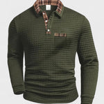Polo Lubomír nabízí moderní a výrazný vzhled díky čtvercové textuře, která dodává oděvu hloubku a charakter. Kontrastní kostkovaný límec a kapsa podtrhují eleganci a originalitu, což z něj činí ideální volbu pro muže, kteří hledají neobyčejný styl. Je pohodlné, hřejivé a univerzální — perfektní pro chladné dny s nádechem elegance.