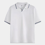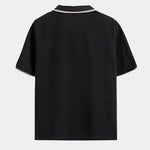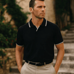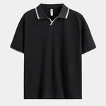 Toto černé polo s véčkovým límečkem spojuje jednoduchou eleganci se sportovním nádechem, takže je ideální jak pro každodenní nošení, tak i pro ležérně elegantní příležitosti. Lehký a pohodlný materiál poskytuje volnost pohybu a proužkový detail na límečku dodává styl bez přehánění.