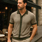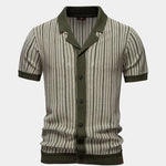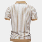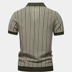 Polo Tibor spojuje vintage styl s moderním pohodlím. Svislé pruhy a celopropínací zapínání na knoflíky vytvářejí elegantní a jedinečný vzhled, zatímco otevřený límec podtrhuje retro charakter. Lehká a prodyšná pletenina zajišťuje příjemné nošení, takže je ideální na teplé dny i stylové volnočasové akce.