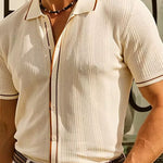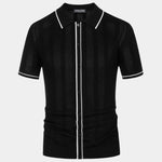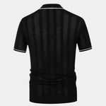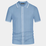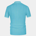 Polo Vilibald přináší retro eleganci díky texturované pletenině a celopropínacímu zapínání na knoflíky, které vytvářejí výrazný a sofistikovaný vzhled. Kontrastní lemování na límci a rukávech podtrhuje vintage charakter, zatímco lehký materiál zajišťuje pohodlí a prodyšnost. Ideální volba pro muže, kteří ocení klasický styl v moderním provedení.
