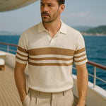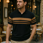Polo Vlastimil spojuje osobitý styl a moderní design díky výrazné kombinaci černé a karamelové barvy. Horizontální pruhy dodávají outfitu trendy vzhled a podtrhují jedinečnost celé série. Materiál je lehký, pohodlný a prodyšný, takže je ideální do teplého počasí a pro každodenní nošení.
