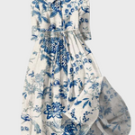 Retro šaty Aneta - Klasické modré šaty jsou elegantní a nadčasové, s květinovým vzorem v odstínech modré na bílém pozadí. Vyrobené z lehké a volné látky, poskytují pohodlí a přirozený pohyb. Pásek v pase zvýrazňuje siluetu, zatímco klasický límec a knoflíky vpředu dodávají vintage kouzlo. Ideální pro denní procházky, neformální akce nebo příležitosti, kde chcete působit sofistikovaně a jemně.