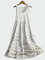 Tyto bezrukávové šaty působí étericky a elegantně díky lehké bílé látce, jemnému řasení a splývavé siluetě. Spodní lem je bohatě zdobený květinovou výšivkou a krajkovými vrstvami, které dodávají hloubku, kouzlo a romantický nádech. Jsou ideální pro slunečné dny, venkovní akce nebo pro každého, kdo hledá ženský, sofistikovaný a nadčasový styl.