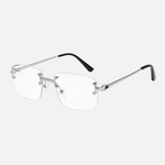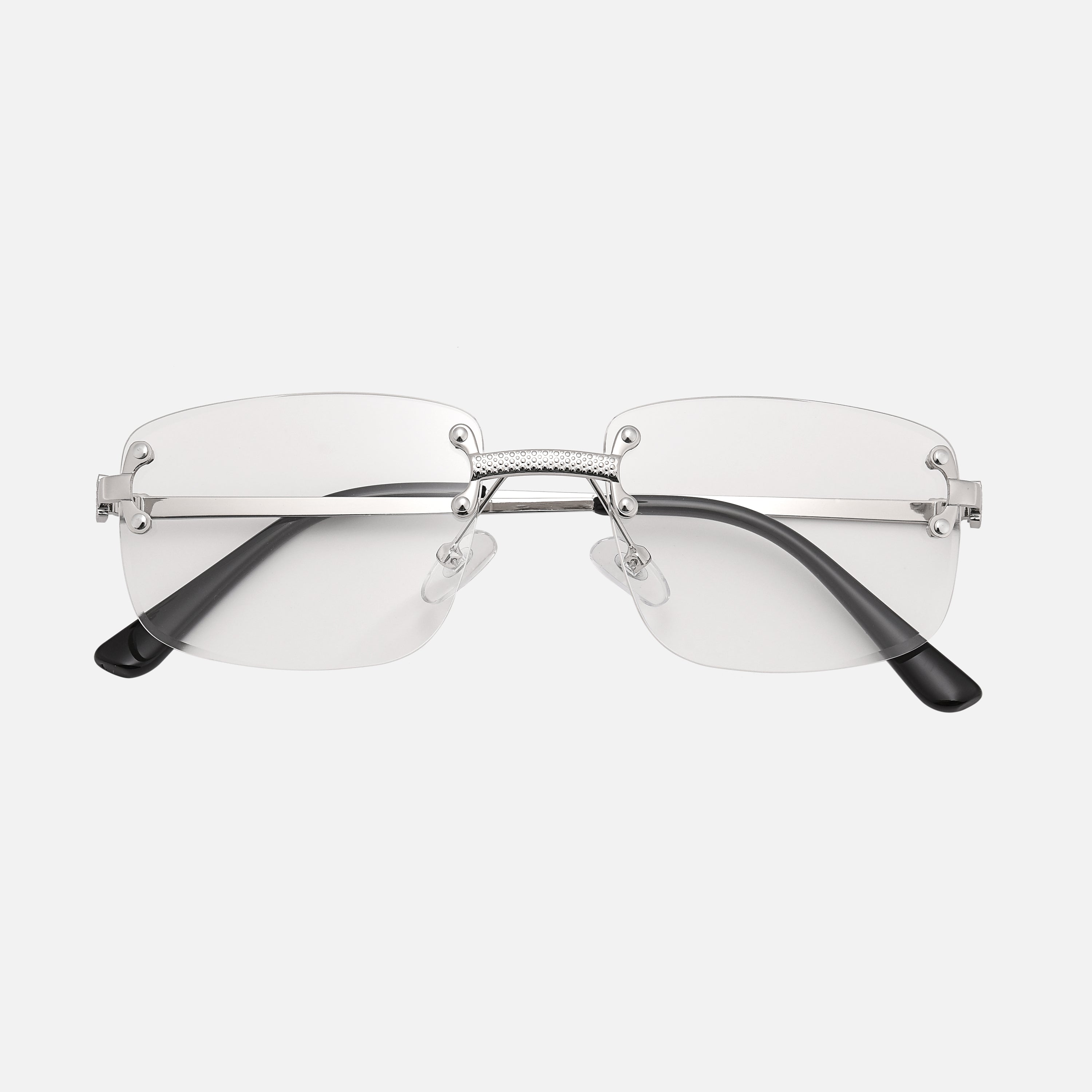 Sluneční brýle s minimalistickým designem, světle modrými gradientními čočkami a jemnou kovovou konstrukcí, určené pro ty, kteří hledají moderní eleganci a lehkost. Geometrický tvar dodává současnou sofistikovanost a čisté kovové detaily z nich činí ideální doplněk pro sebevědomý městský styl.