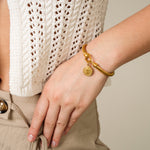Náramek Beatriz – Mince Štěstí spojuje eleganci a symboliku v jednom šperku. Zlatý spletený design dodává sofistikovaný vzhled a přívěsek ve tvaru mince představuje prosperitu, štěstí a pozitivní energii. Lehký, pohodlný a výrazný — ideální doplněk, který pozvedne každý outfit od ležérního po elegantní s osobitostí a stylem.
