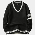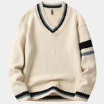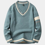 Tento vintage světrový kousek v petrolově modrém odstínu vyniká hlubokým výstřihem do V, zvýrazněným kontrastními pruhy, které dodávají retro a útulný vzhled. Měkký materiál zajišťuje pohodlí a volnější střih umožňuje příjemnou volnost pohybu. Je ideální pro každého, kdo má rád styl retro s moderním nádechem, a skvěle se kombinuje s džíny, košilemi či volnočasovými outfity.