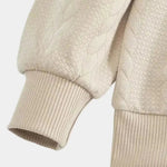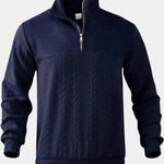 Tento pletený béžový svetr spojuje bohatou texturu s klasickým a hřejivým designem, čímž vytváří elegantní a pohodlný kousek pro chladné dny. Praktický půlzip umožňuje rychle upravit styl, zatímco copánkový vzor na přední části dodává hloubku a sofistikovaný vzhled. Měkký, teplý a všestranný — snadno doplní volnočasové i uhlazenější outfity.