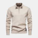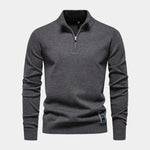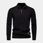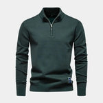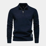 Tento univerzální námořnicky modrý svetr spojuje moderní jednoduchost s praktickým půlzipem, který umožňuje snadno upravit vzhled podle příležitosti. Měkký materiál poskytuje pohodlí a volnost pohybu a elegantní střih vytváří čistou a sofistikovanou siluetu. Je ideální pro každodenní nošení a snadno se kombinuje s ležérními i formálnějšími outfity.