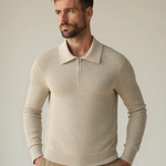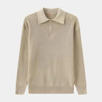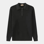 Tento elegantní černý svetr vyniká minimalistickým designem v kombinaci s polo límečkem a nenápadným zipem, což vytváří čistý a sofistikovaný vzhled. Měkký materiál zajišťuje pohodlí po celý den a lehká struktura umožňuje snadné kombinování s ležérními i formálnějšími outfity. Jednobarevné provedení dodává univerzálnost pro každou příležitost.