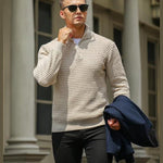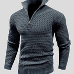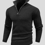 Tento prémiový černý svetr s výraznou texturou a praktickým půlzipem nabízí moderní a zároveň elegantní vzhled. Měkký materiál se příjemně přizpůsobí postavě a poskytuje ideální kombinaci pohodlí a stylu, díky čemuž je vhodný jak pro volný čas, tak i pro upravenější outfit.