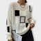 Dámský svetr zaujme patchworkovým designem s kontrastními geometrickými čtverci, které vytvářejí moderní a kreativní vzhled. Kombinace různých struktur pleteniny dodává kousku hloubku a originalitu, přičemž si zachovává pohodlí a univerzální využití pro každodenní nošení.