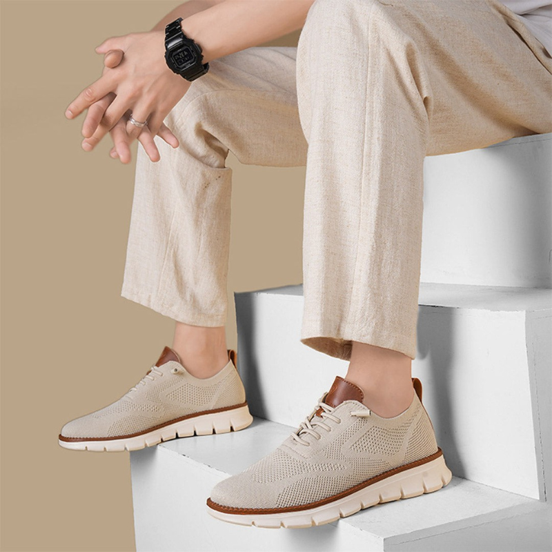 Pánské prodyšné pletené tenisky poskytují vysoké pohodlí při každodenním používání díky pružnému a vzdušnému úpletovému svršku, lehké podrážce s tlumením dopadu a měkkému polstrování uvnitř, které snižuje únavu a zajišťuje komfort při chůzi, práci i volnočasových aktivitách.