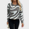 Dámský svetr zaujme abstraktním vlnitým vzorem v jemném kontrastu, který působí moderně a stylově. Pohodlná pletenina a klasický střih z něj dělají ideální kousek pro každodenní nošení, snadno kombinovatelný s jednoduchými kalhotami nebo elegantnějšími outfity.